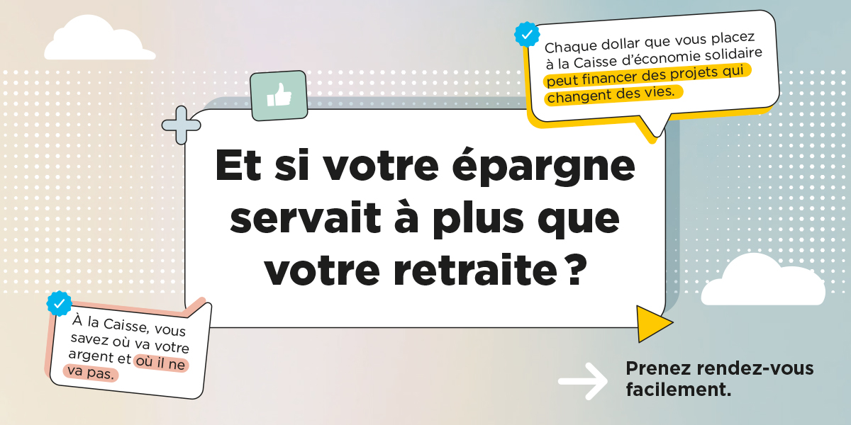 La Caisse d’économie solidaire est la principale coopérative financière québécoise spécialisée en économie sociale et en investissement responsable (IR). Elle réunit près de 22 000 membres. Avec l’épargne de ses membres, la Caisse investit 1,6 milliard $ en prêts aux coopératives et OBNL du Québec. Elle compte près de 2,5 milliards $ d’actif. Son expertise spécialisée est reconnue au sein du Mouvement Desjardins.